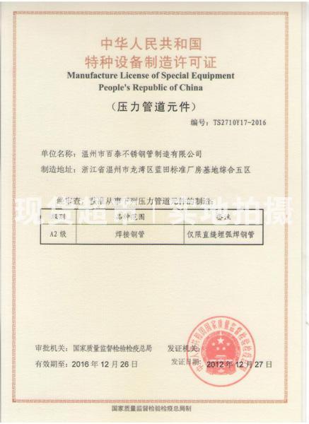 特種設(shè)備制造許可證